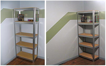 How silly of me. I didn’t want black bookcases after all. Metal is the way to go! I think these will look really cool with my computer desk (which has a silver base and frosted glass top). Just gotta get the shelves painted to match the molding. Will the painting ever end?