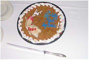The big news from this corner of the worlds was the wedding of Jeff and Kelly this past weekend. It was like “old home week” all weekend long. We had the rehearsal/dinner Friday night … complete with a cock-topped cookie for the Bride. Saturday was the wedding and alcohol soaked reception. Sunday I went on a hike with Michael and Preston to the Chimney Tops in the Great Smoky Mountains National Park. Yesterday was spent trying to recover (and find a new sofa). Alas, no luck on the sofa … but I do now own an Interactive Talking Edna Mode Doll.
