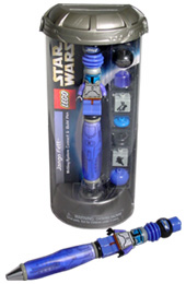 So, we didn’t end up in Miami on Saturday. The rain made us lazy, so we went to the fancy mall nearby. Whoo. My queenie side came out because they had Crate & Barrel, Pottery Barn, William Sonoma and Restoration Hardware all under the same roof. Whoo! I love home decor and gadget-y kinda stuff. While in the Discovery Channel Store I stumbled across a Lego Star Wars Jango Fett Pen. How sweet is that?!? The trip back yesterday was not nearly as eventful as the one down. Some dumb lady ended up getting seated on our plane when she was supposed to be at a different gate and on a different flight. How silly of her!